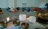 Lors de la dernière séance, les participantes ont pu expérimenter les vibrations en mettant les pieds dans mon grand bol. Je le frappe et les vibrations sont ressenties jusqu'au bassin.